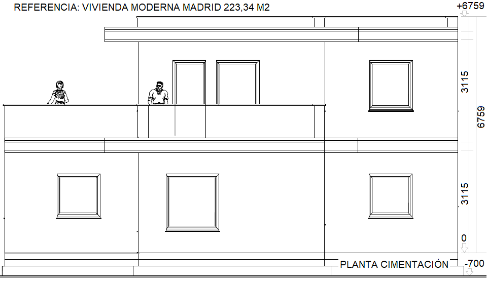 Es una vivienda moderna prefabricada de dos plantas, con fachadas de hormigón, construida a medida en Madrid.