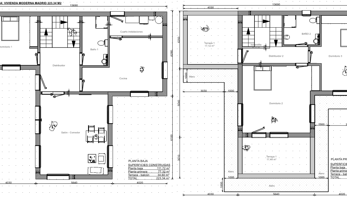 En la planta superior se desarrolla un programa de dos amplios dormitorios con un baño y dos terrazas.