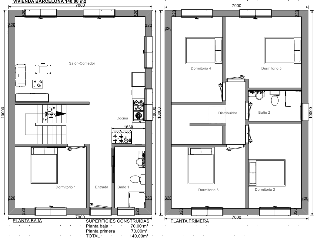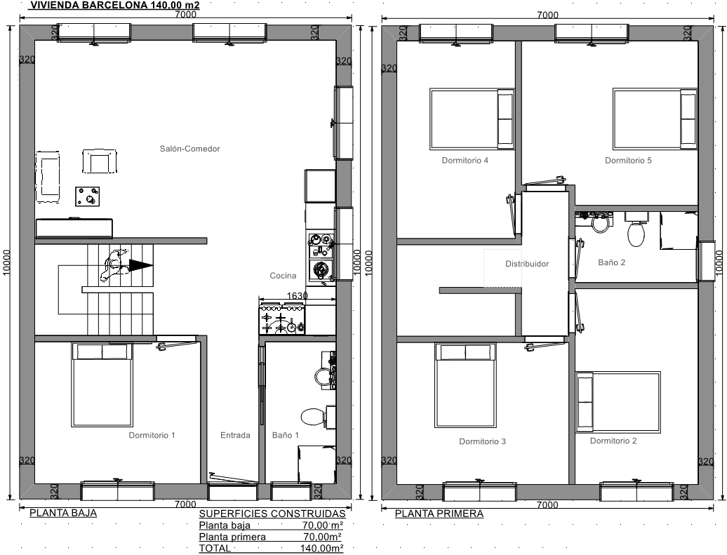 Vivienda unifamiliar Barcelona 140m2 con cubierta plana inclinada y fachadas SATE acabadas hormigón. Su precio es desde 136,379 euros.