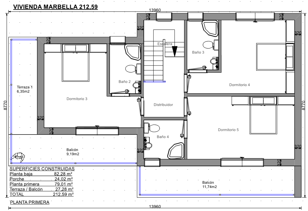 Viviendas modernas pasivas y prefabricadas modelo Marbella 212,59 m2 acabada en hormigón.