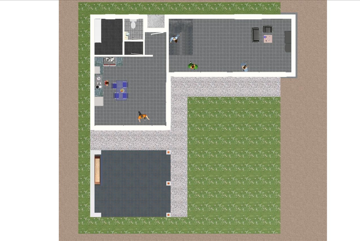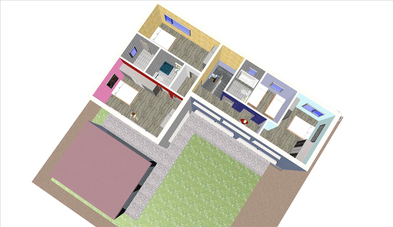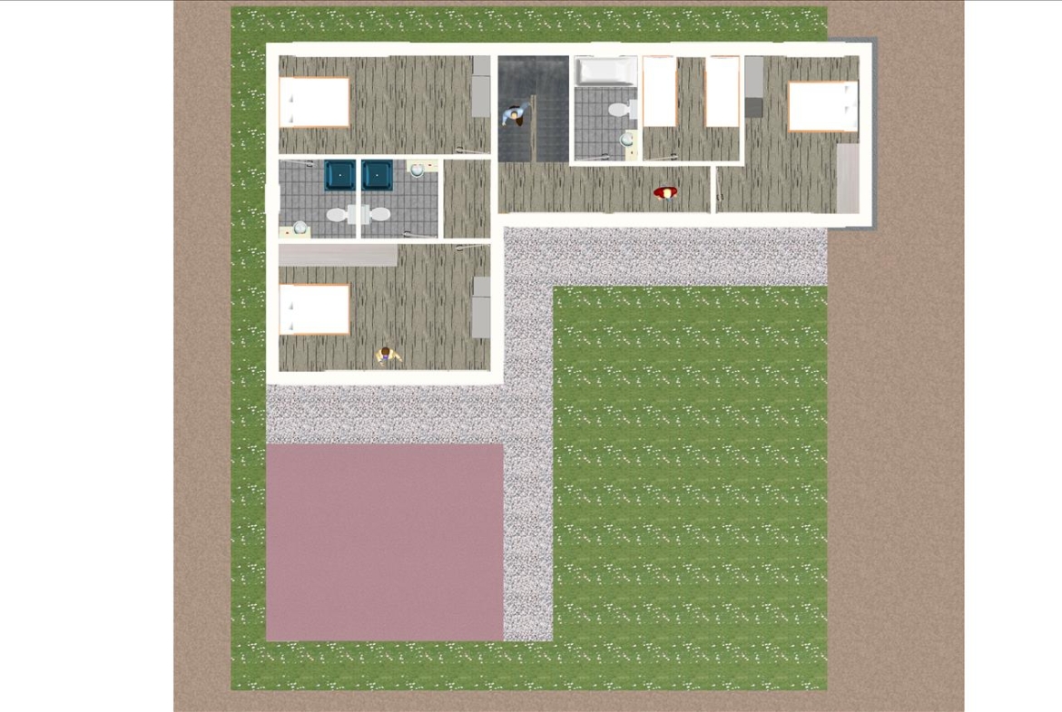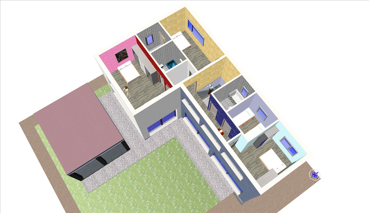 Casa prefabricada con la teja puesta, acabado final en fachadas de hormigón con sistema SATE y revestimiento en cemento coloreado.