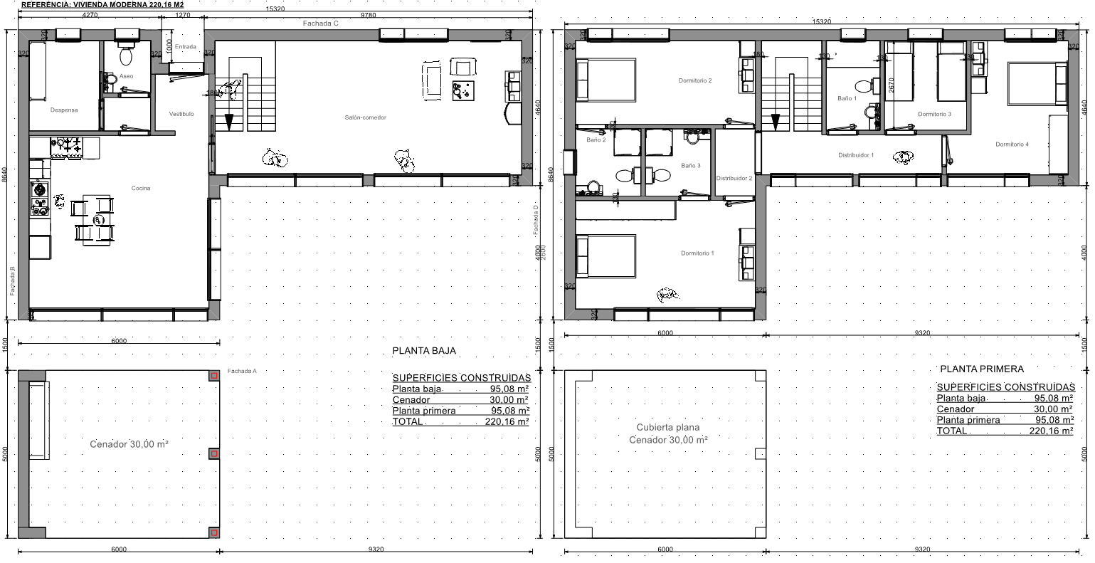 Características de la casa moderna modelo Barcelona 220,16 m2