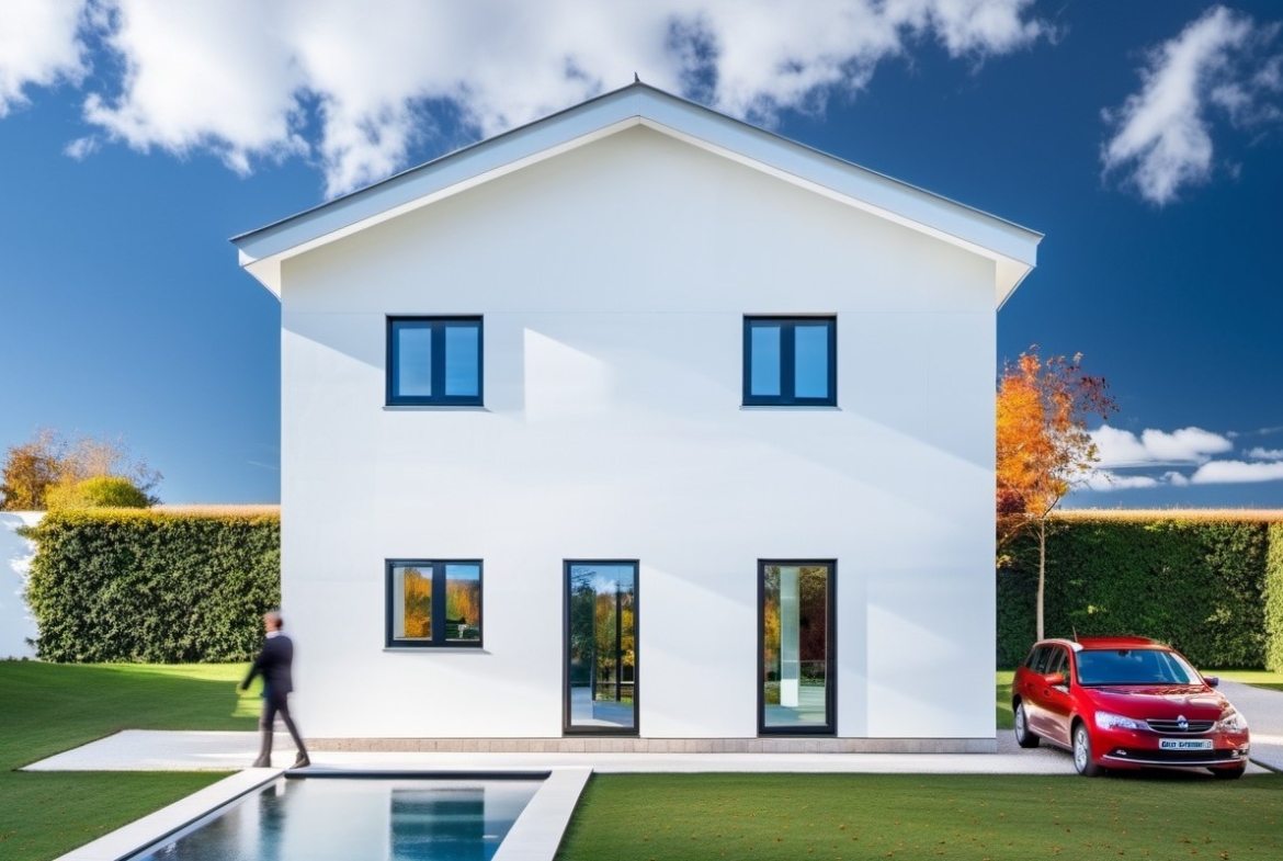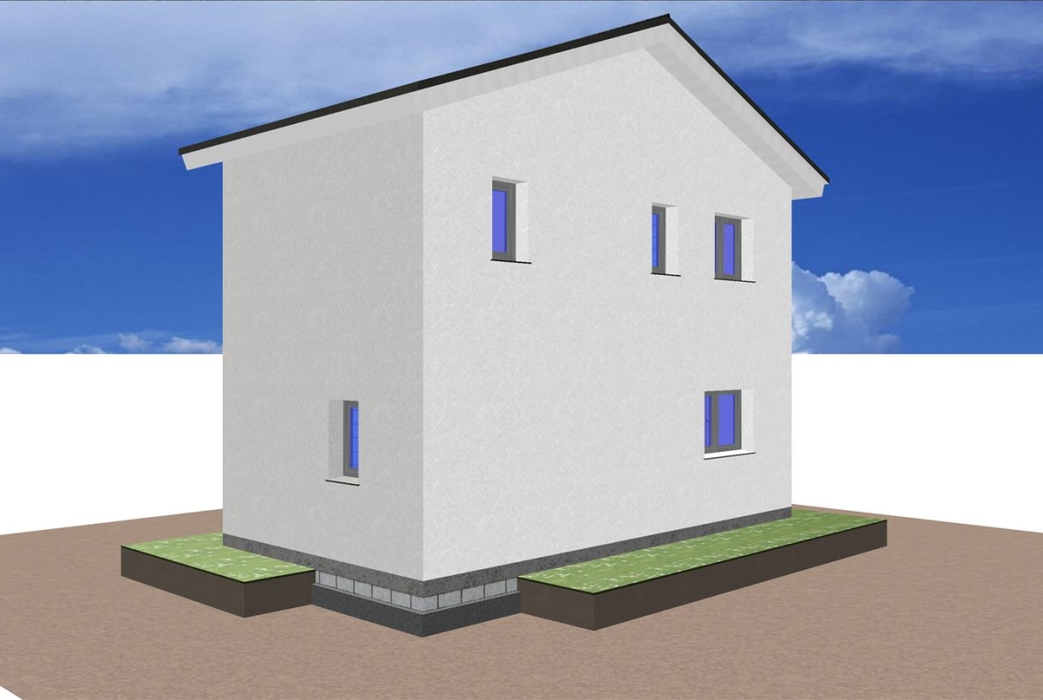 La fachada de hormigón está revestida de un mortero monocapa de color blanco.