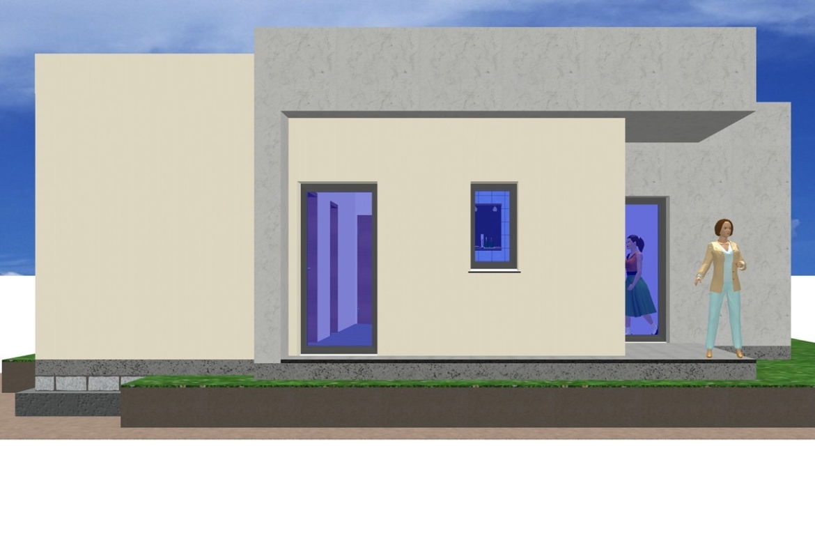 Una casa moderna acabada en hormigón y mortero de cemento coloreado, con un elegante diseño de tipo minimalista, conforman un conjunto muy compacto.