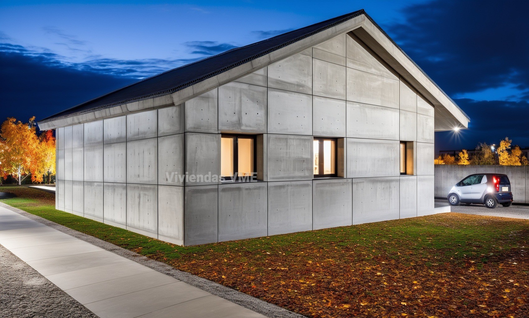 Una vivienda VME de alta eficiencia energética, con acabados en hormigón y cemento, casa que se caracteriza por ser duraderas.